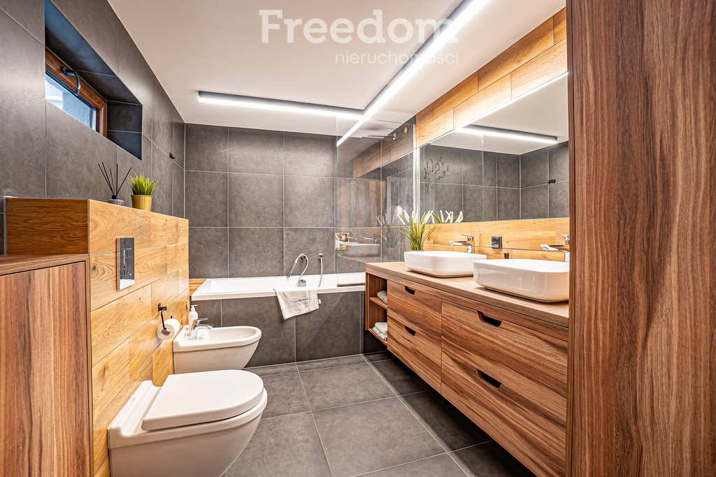 -łazienka (7,7 m²) z wanną, WC, bidetem i podwójną umywalką