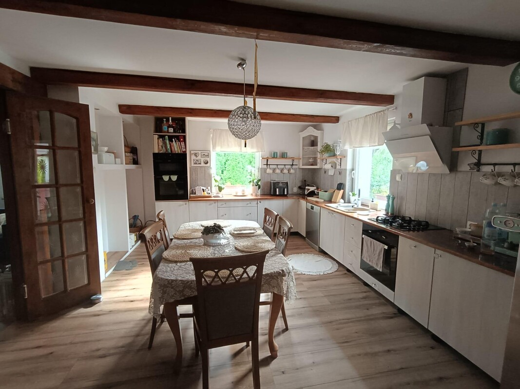 - Kuchnia z jadalnią: Połączona z wyjściem na duży taras, doskonała do rodzinnych posiłków.