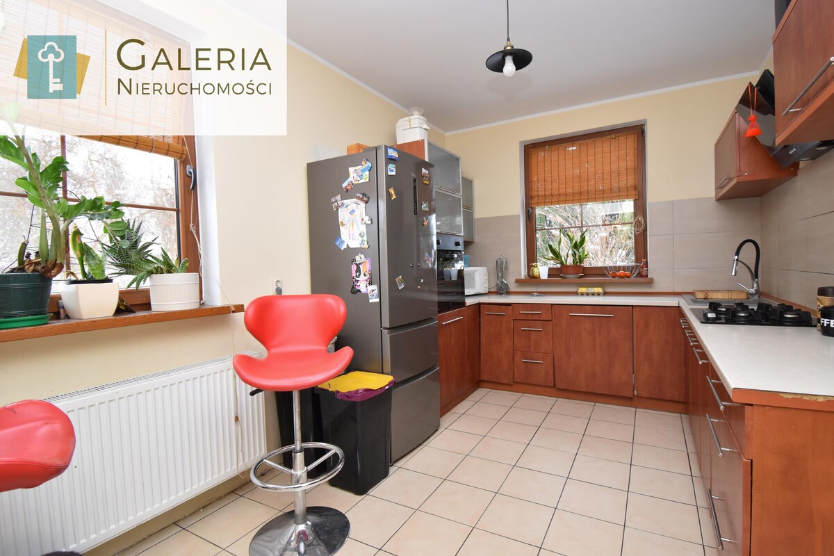 Kuchnia jest częściowo oddzielona od salonu, co zapewnia komfort użytkowania, a jednocześnie zachowuje otwarty charakter przestrzeni.