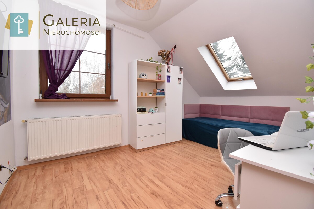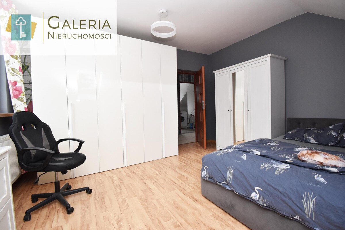 Piętro domu oferuje dodatkowe pokoje, które mogą pełnić funkcję sypialni, pokoi dziecięcych lub gabinetu do pracy. Znajduje się tu również druga łazienka przeznaczona do własnej aranżacji, co daje przyszłym właścicielom możliwość dostosowania przestrzeni do swoich potrzeb.