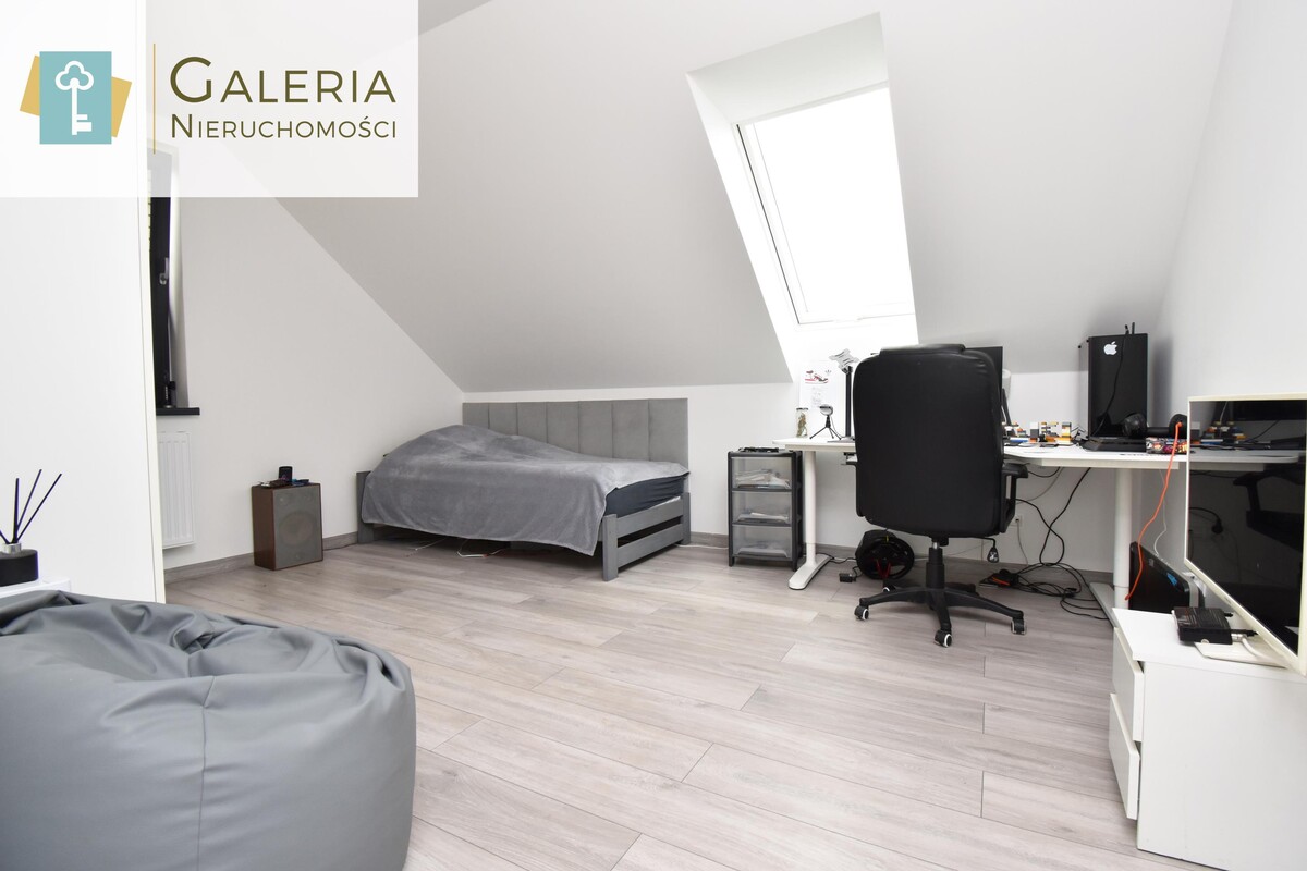 Na tej kondygnacji znajduje się jeszcze łazienka z WC i prysznicem, przedpokój oraz pomieszczenie, które pełni obecnie funkcje biura.