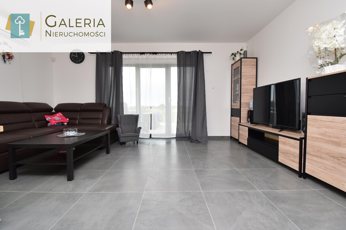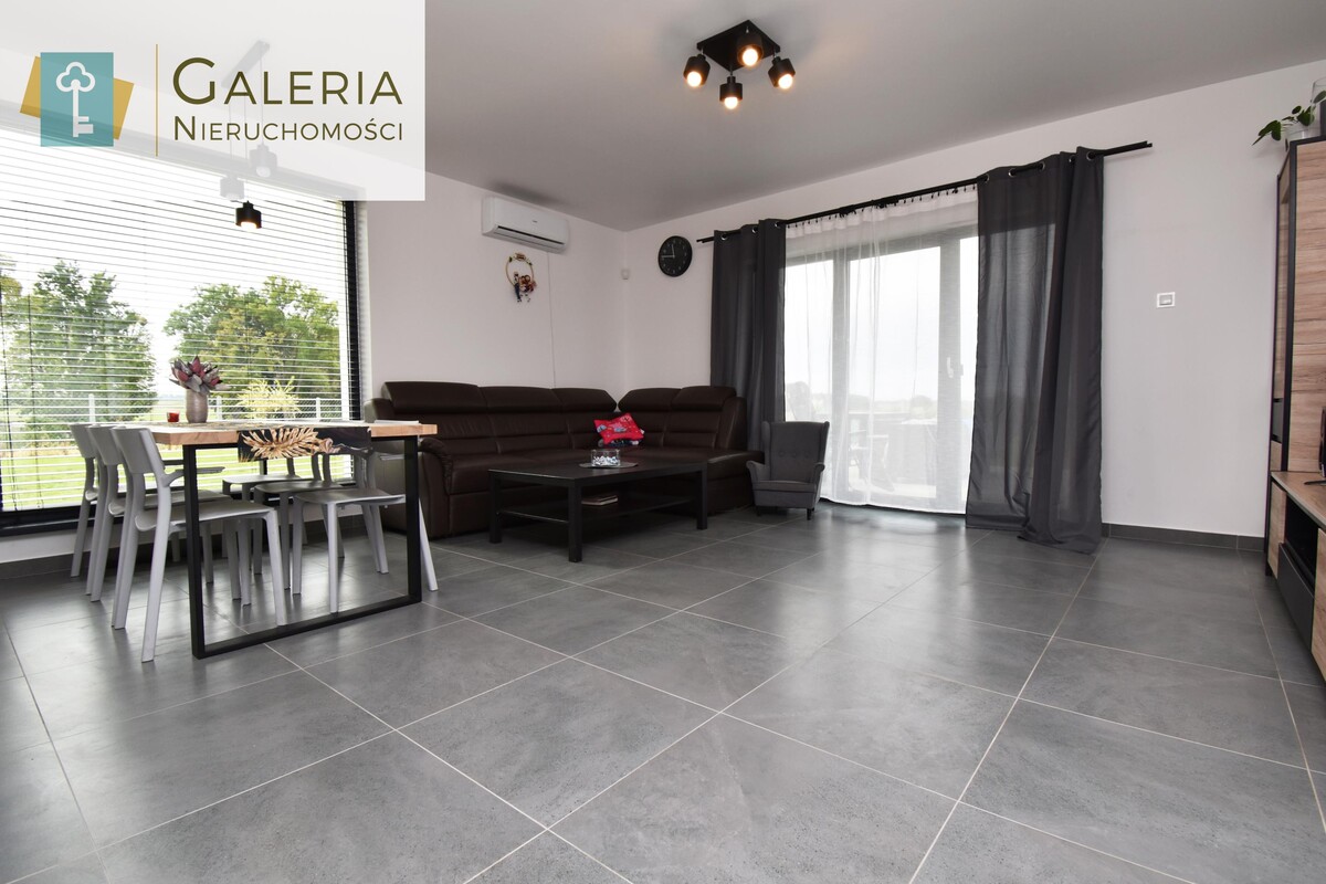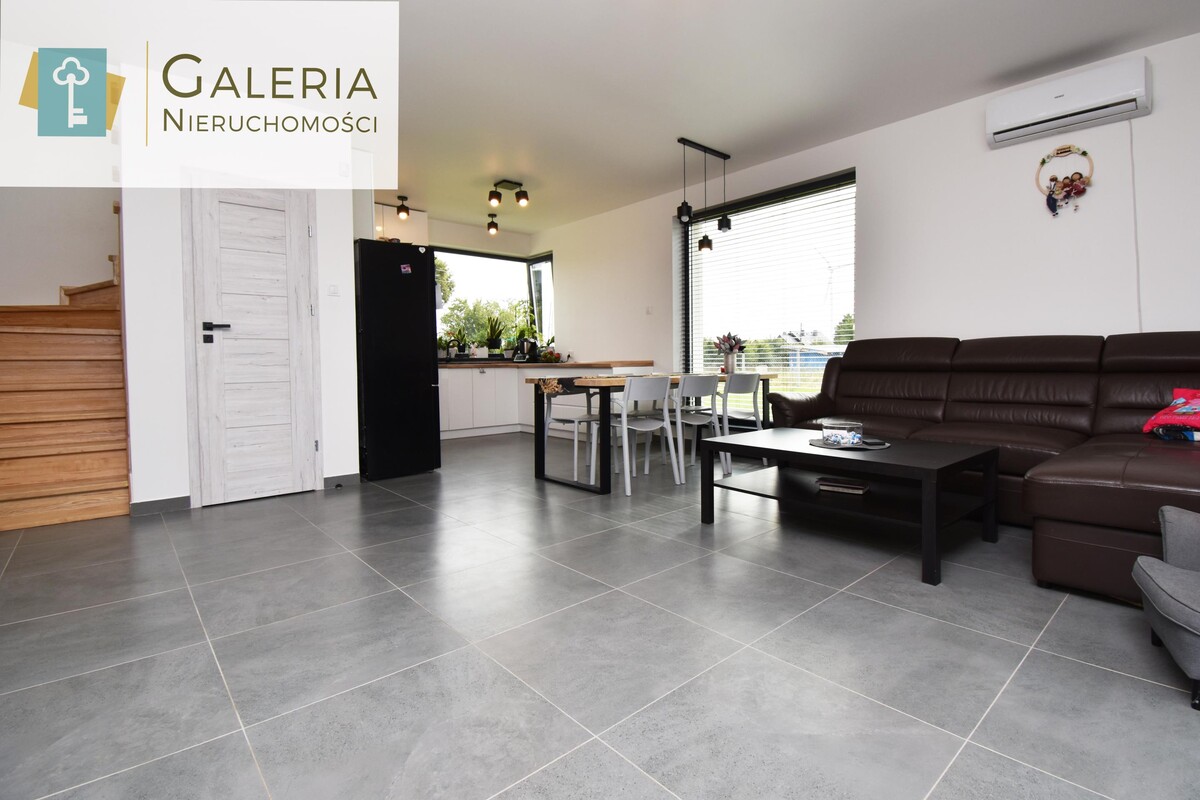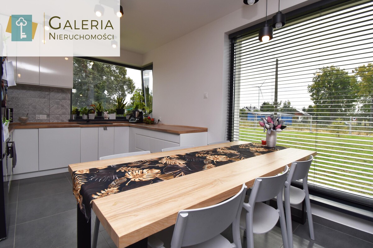 Dom został zaprojektowany w nowoczesnych kolorach, dzięki czemu jest ładny i ponadczasowy. Dodatkowo został umeblowany i nadaje się od razu do zamieszkania.