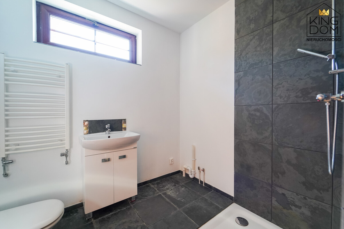 Dom sześciopokojowy (4 na parterze, w tym dwa do wykończenia), z możliwością podzielenia go na dwa niezależne mieszkania, lub stworzenia punktu handlowo-usługowego w bryle budynku niewielkim kosztem.