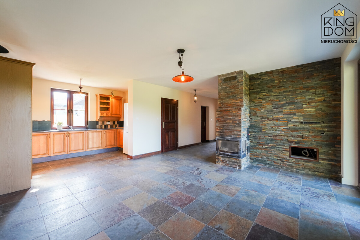 - przestronny salon z kominkiem i wyjściem na duży, częściowo zadaszony taras,