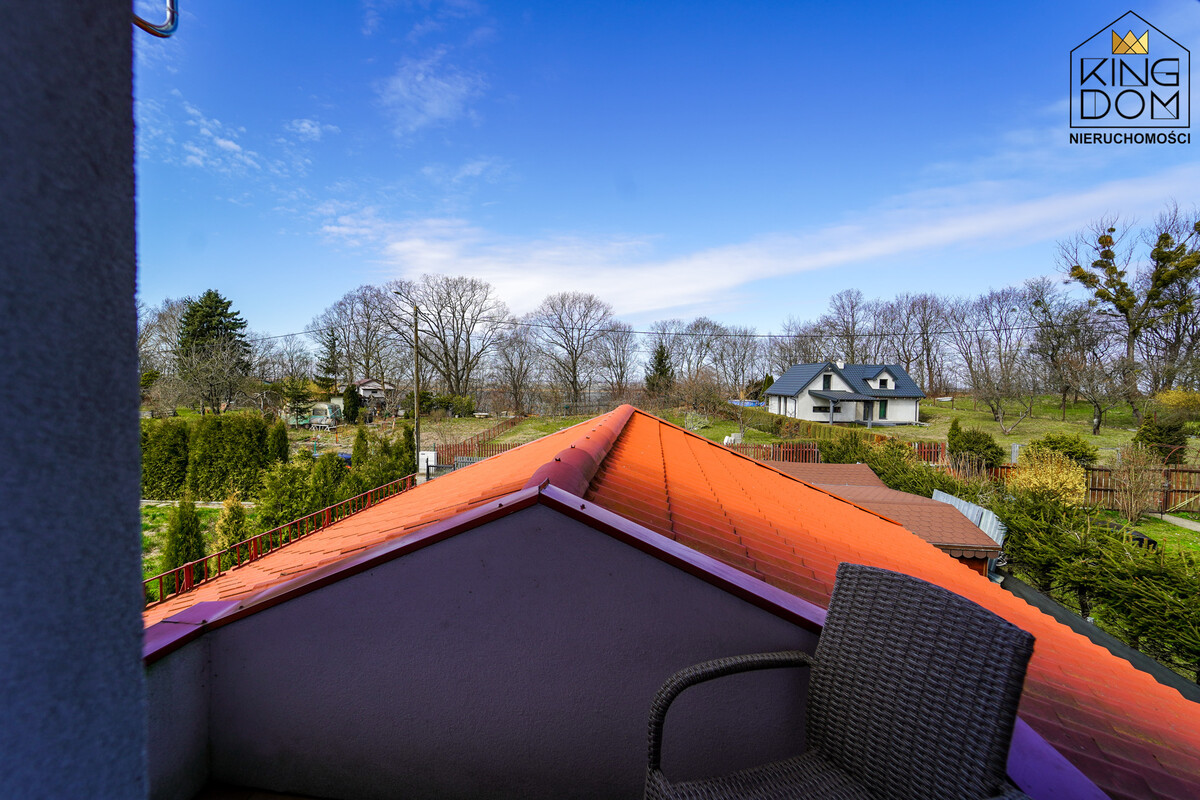 Działka na której posadowiony jest dom została starannie zagospodarowana licznymi nasadzeniami, tworzącymi naturalną zieloną barierę. Podjazd oraz dojście do budynku wyłożono kostką brukową, co zapewnia dodatkowe, wygodne miejsca postojowe dla gości. Nieruchomość podłączona jest do sieci energetycznej i wodociągowej oraz posiada własną, przydomową oczyszczalnię ścieków.