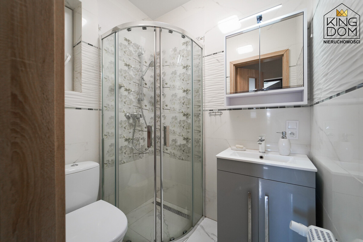 - łazienka z kabiną prysznicową i wc,