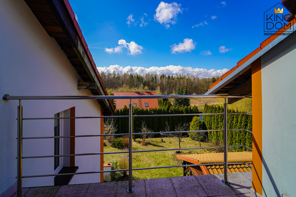 Nieruchomość powstała według indywidualnego projektu, co odróżnia ją od powtarzalnych domów z katalogu. Przemyślany układ funkcjonalny zapewnia domownikom wyjątkowe poczucie prywatności. Wnętrze wyróżnia się niezwykle ciekawym wykorzystaniem antresoli, na której zorganizowano przestronną kuchnię oraz jadalnię. Sercem domu jest salon z kominkiem, który posiada system rozprowadzenia ciepła do pozostałych pokoi. To rozwiązanie nie tylko buduje wyjątkowy klimat w zimowe wieczory, ale stanowi również efektywne, alternatywne źródło ogrzewania.