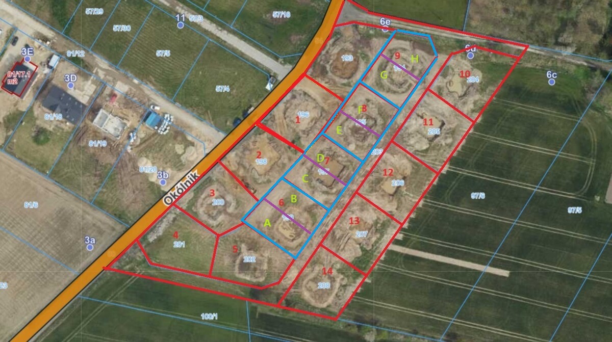 Domy wg projektu dom w borówkach 7 (B) usytuowane na działkach od 328 m2 do 370 m2/ na każdy segment.