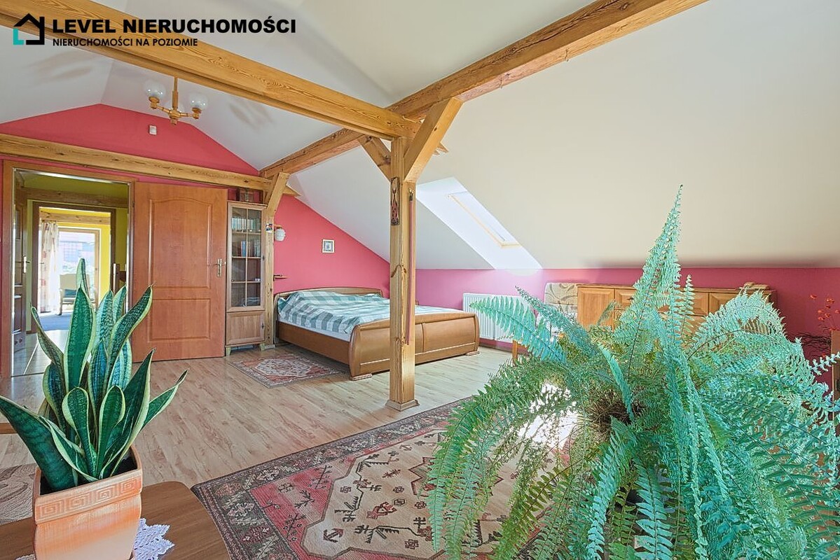 Posiadamy na sprzedaż dom wolnostojący z garażem w Pasłęku o powierzchni 148,42 m2 przy ulicy Traugutta. Nieruchomość zlokalizowana na dwóch działkach o łącznej powierzchni 1519 m2.Działka pierwsza o powierzchni 756 m2 to pełna własność oraz działka druga o powierzchni 763 m2 dzierżawiona. Parter domu składa się z salonu z wyjściem na taras i ogród, sypialni, gabinetu, łazienki, osobnej widnej kuchni, pomieszczenia gospodarczego oraz przedpokoju. Piętro składa się z dwóch przestrzennych sypialni, łazienki oraz przedpokoju. Dodatkowo dom posiada garaż w bryle budynku o powierzchni 19,71 m2 oraz pomieszczenie piwniczne o powierzchni 20 m2.W budynku zastosowano dwie formy ogrzewania, piec na olej oraz kominek w salonie z rozprowadzeniem na inne pomieszczenia. Dodatkowo na dachu zamontowano panele solarne do podgrzania wody. Cały teren pięknie zagospodarowany, z licznymi nasadzeniami, drzewkami oraz częścią warzywną. Dodatkowo na działce znajduje się pomieszczenie magazynowe z drewutnią oraz drewniany domek letni. Z nieruchomości rozpościera się widok na tereny zielone, łąki oraz stawy.