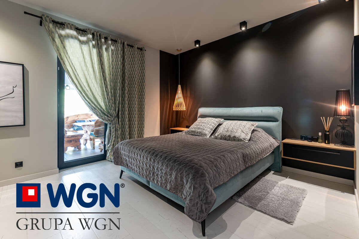 Kolejnym nietuzinkowym i przyciągającym uwagę miejscem jest pokój sypialniany w którego skład wchodzi duża sypialnia, pokój kąpielowy i garderoba. To jest po prostu coś niespotykanego, to miejsce, które można nazwać Twoim azylem. Jeżeli potrzebujesz, to możesz odizolować się od reszty domowników w tym miejscu. Dodatkowo z jednego z pomieszczeń możesz wyjść bezpośrednio na ogród.
