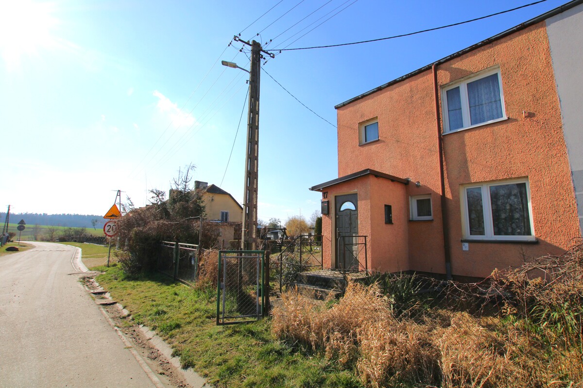 Budynek mieszkalny usytuowany jest na własnościowej działce o powierzchni 609 m2,wymagającej zagospodarowania, na której usytuowany jest również murowany garaż oraz budynek gospodarczy. Do nieruchomości przynależy dodatkowa działka ogrodnicza w pobliżu budynku o powierzchni 497 m2.Dom wybudowany został w latach 80-tych, z pustaka, ocieplony zewnętrznie styropianem, otynkowany, częściowo podpiwniczony.