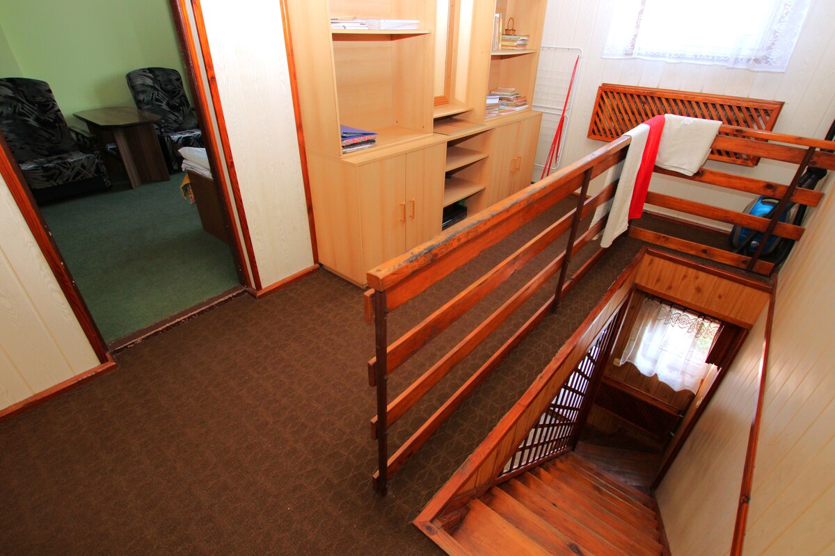Układ pomieszczeń: na parterze wiatrołap, przedpokój, duży pokój dzienny o pow.24 m2,łazienka z wc oraz kuchnia o pow. ok.9 m2,na I piętrze znajdują się 2 pokoje o powierzchni 24 m2 i 14 m2.