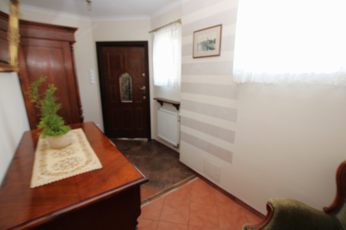 Wnętrza wykończone w tradycyjnym stylu, z dębowymi schodami, parkietową mozaiką na podłogach i gładziami tynkowymi na ścianach – gotowe do zamieszkania.
