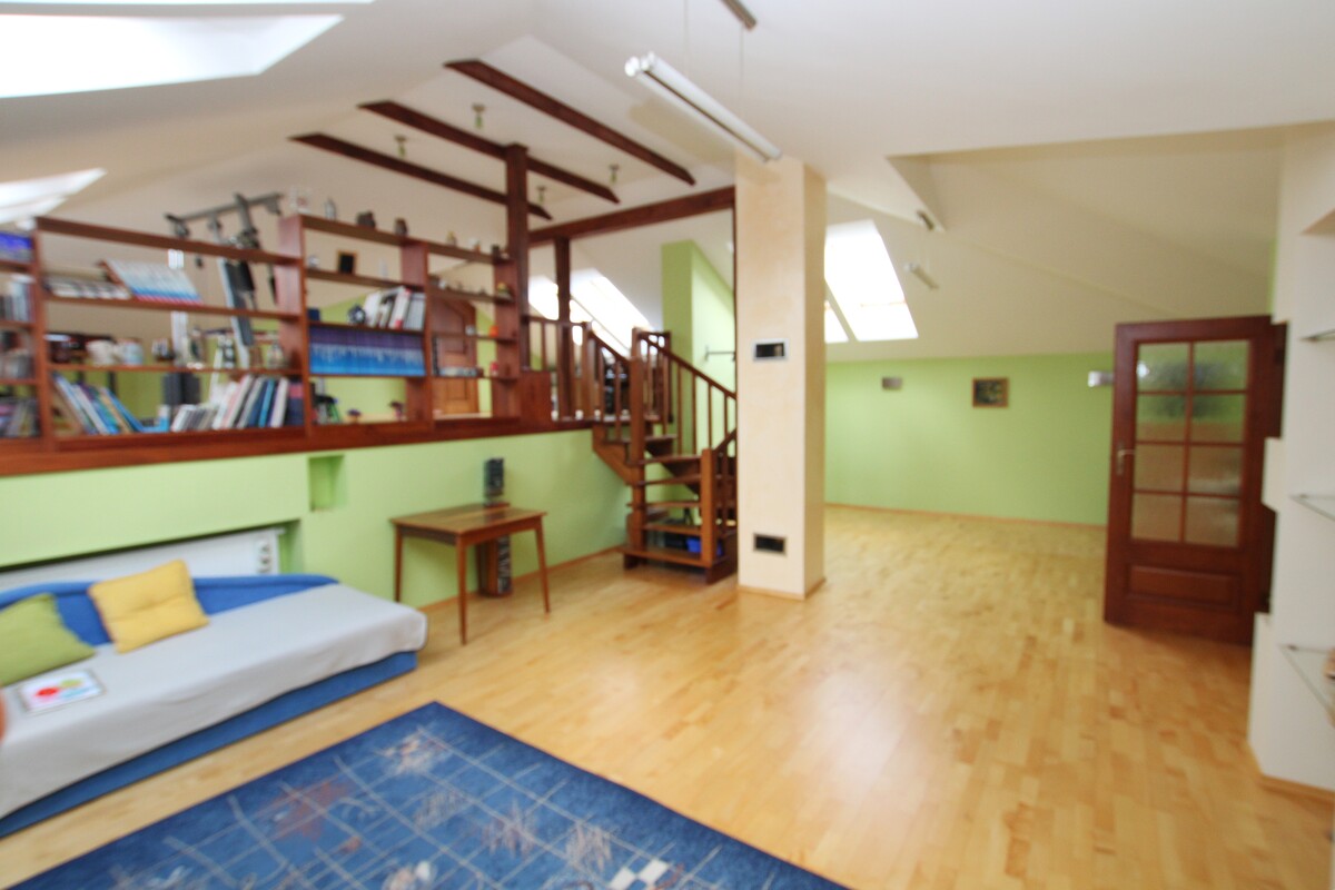 Nowo wybudowane, klimatyzowane, dwupoziomowe poddasze użytkowe (74,80 m²) to idealna przestrzeń na domową siłownię, strefę rozrywki lub duży gabinet.