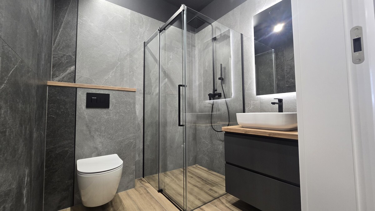 W łazienkach gres.