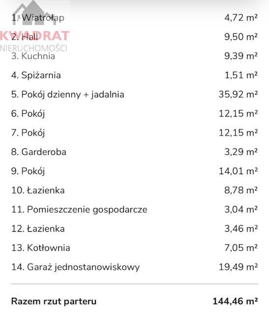 Dom o powierzchni 124,97 m2.Garaż 19,49 m2 + wiata na drugie auto.