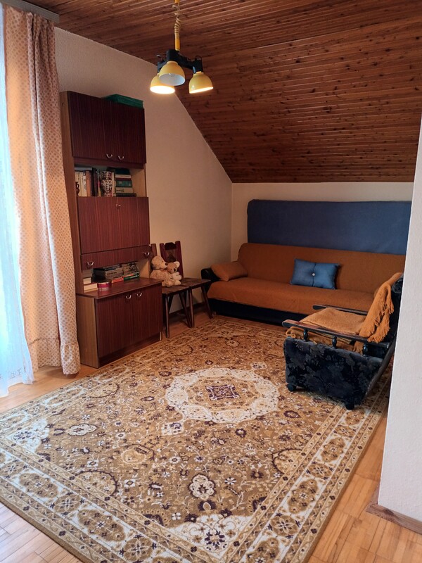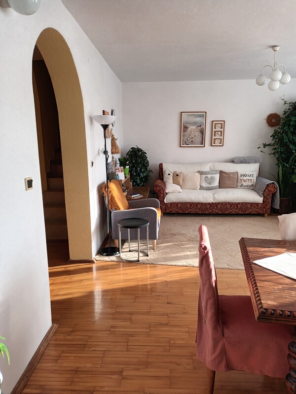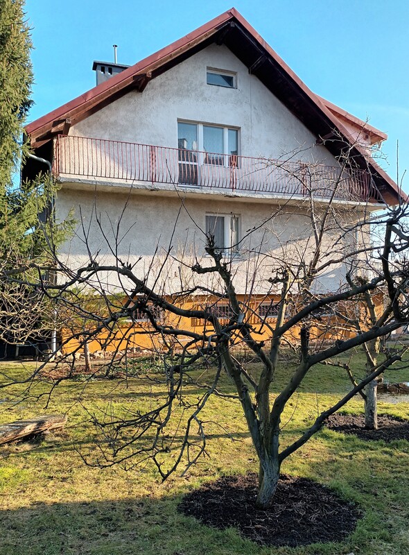 Dom w całości podpiwniczony. Garaż w budynku. Parter: wiatrołap, korytarz, WC, kuchnia z jadalnią, sypialnia, salon. Pierwsze piętro: trzy sypialnie, garderoba, łazienka. Strych nieużytkowy. Piękny, dojrzały ogród z drzewami i krzewami owocowymi, bylinami, krzewami ozdobnymi. Ogrzewanie i ciepła woda z kotła gazowego. Dom do remontu.