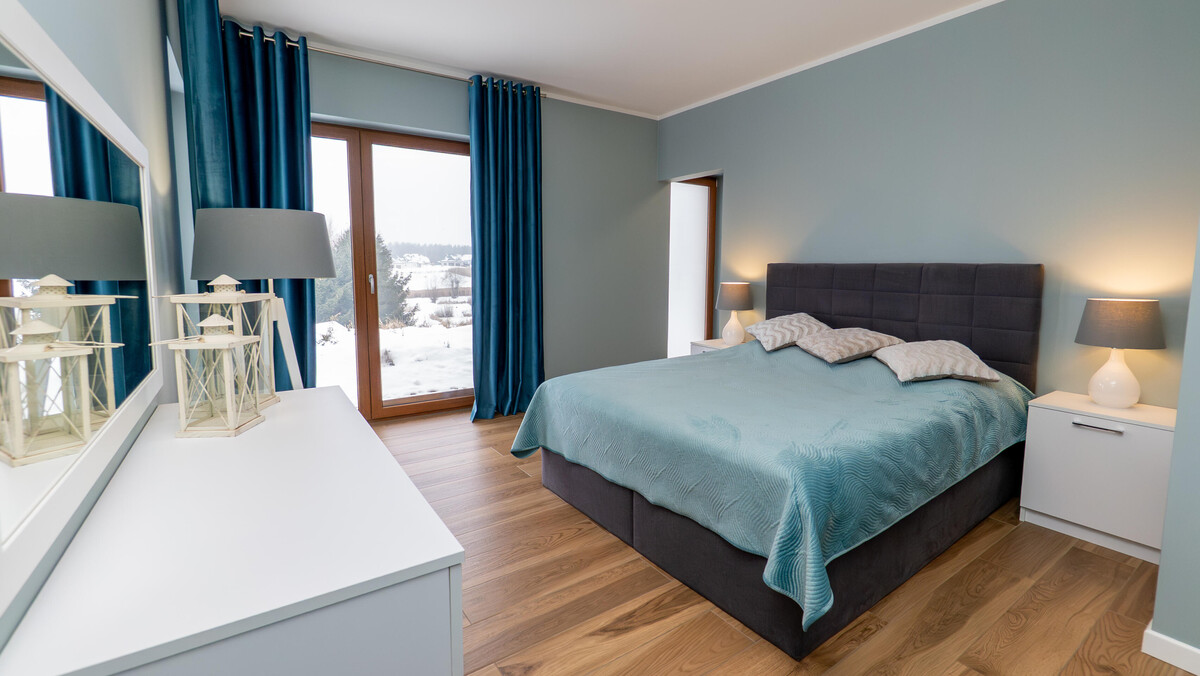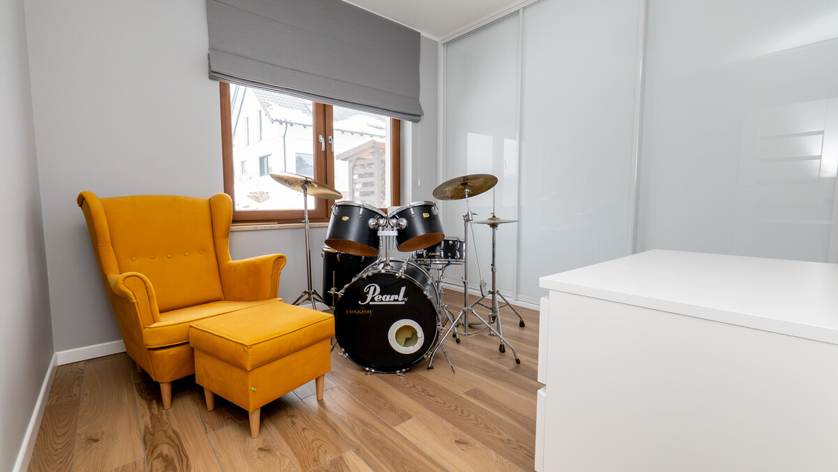 Trzy ustawne sypialnie – w tym główna z garderobą i wyjściem na taras. Dwie kolejne sypialnie mogą stać się pokojami dzieci, gabinetem albo miejscem do ćwiczeń. Dom odpowiada zarówno rodzinie, jak i osobom pracującym zdalnie.
