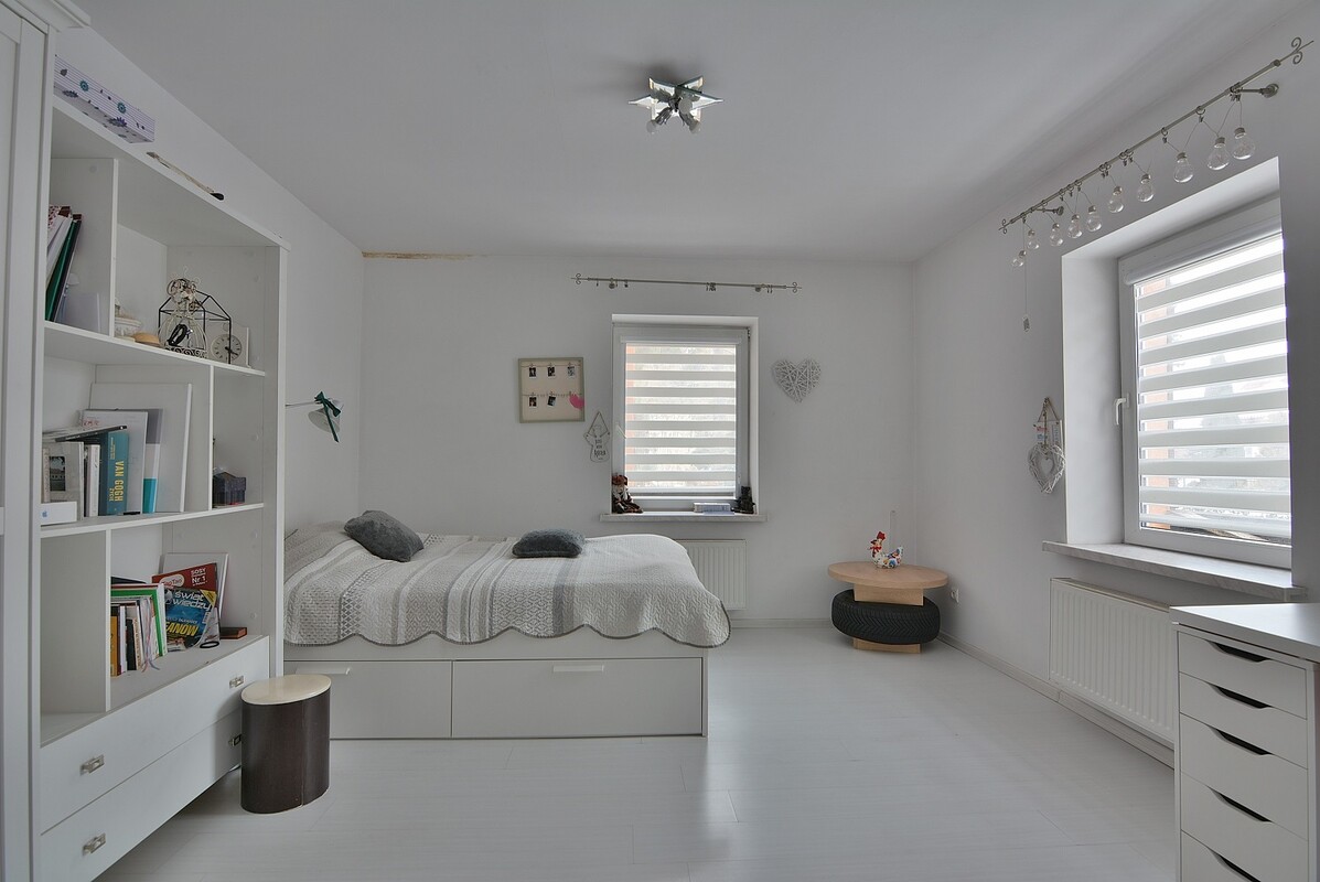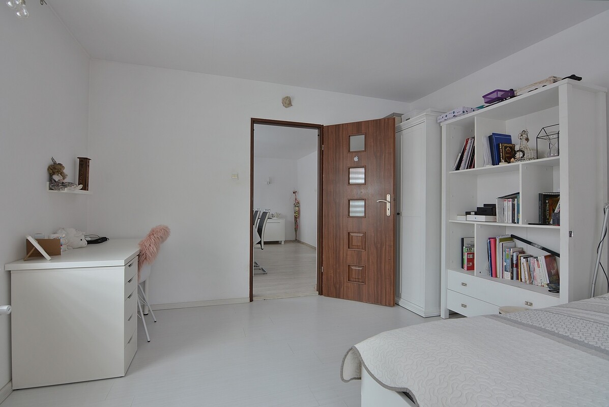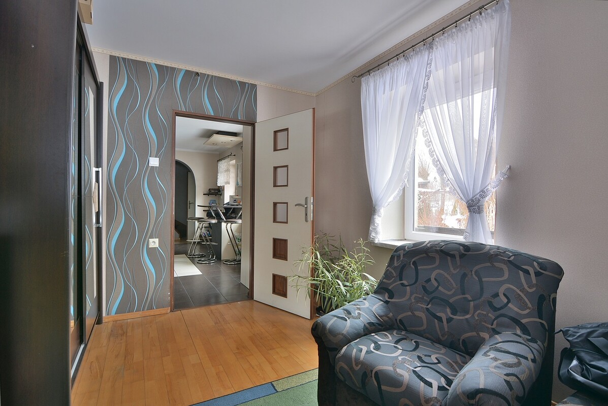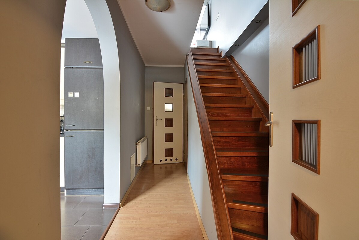 Mieszkanie znajduje się na piętrze, prowadzą do niego drewniane schody. Posiada oddzielny pomiar wody, z pewnością nadaje się pod wynajem.