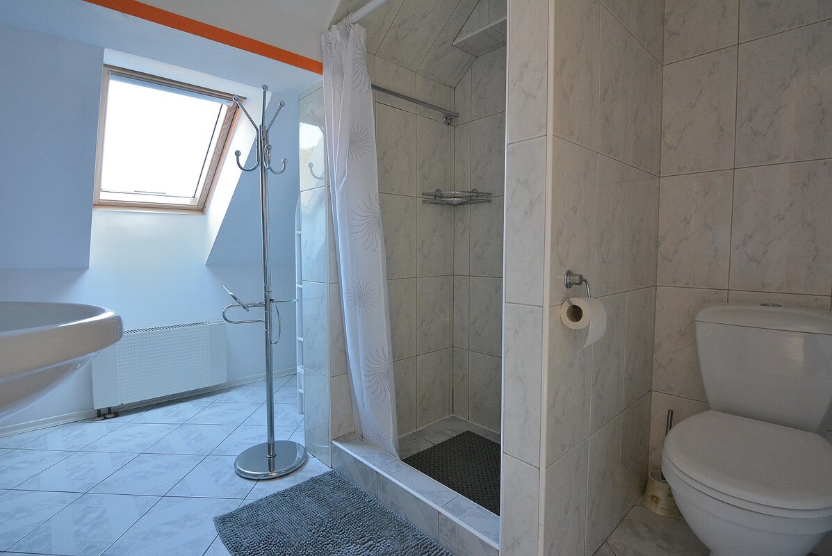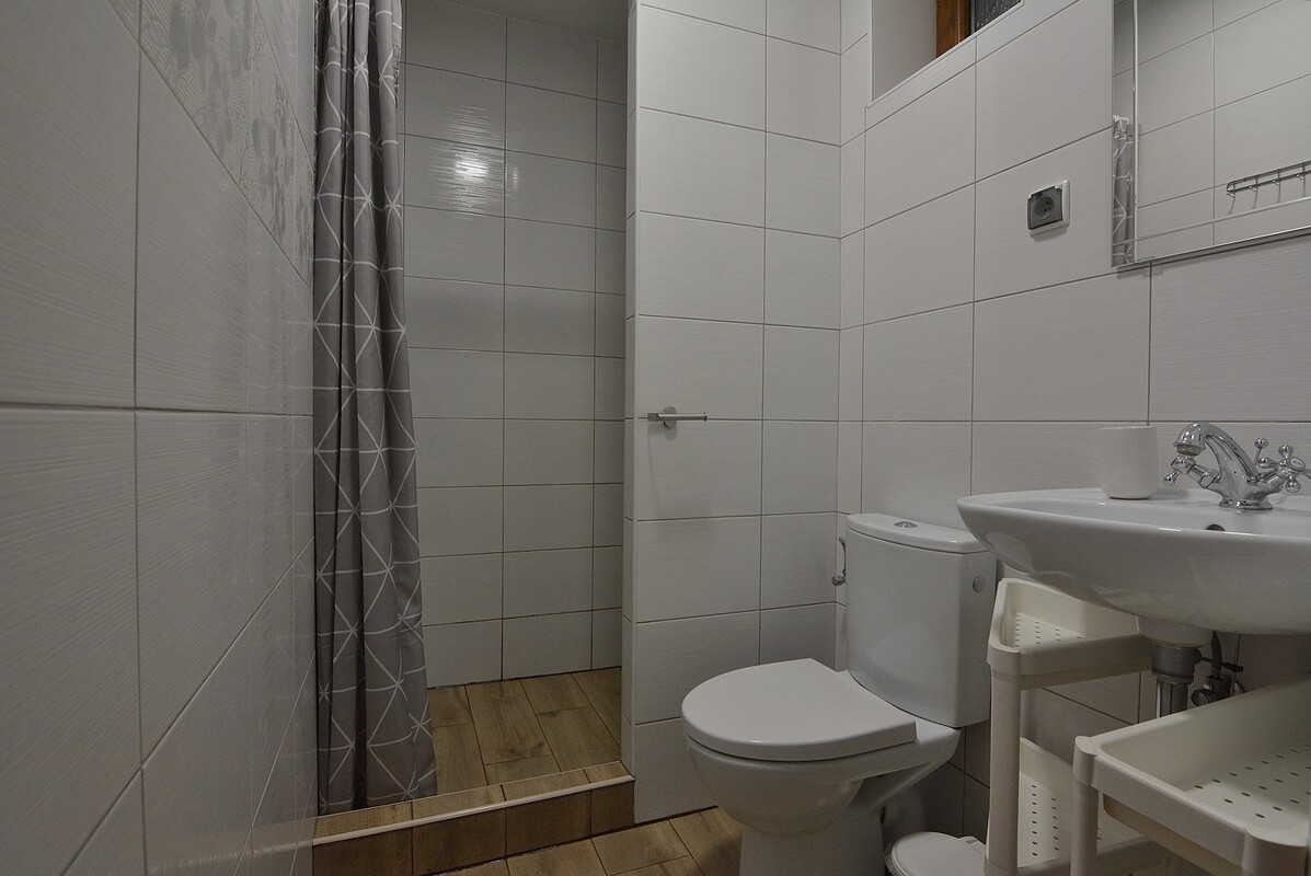 * Łazienka z kabiną prysznicową.