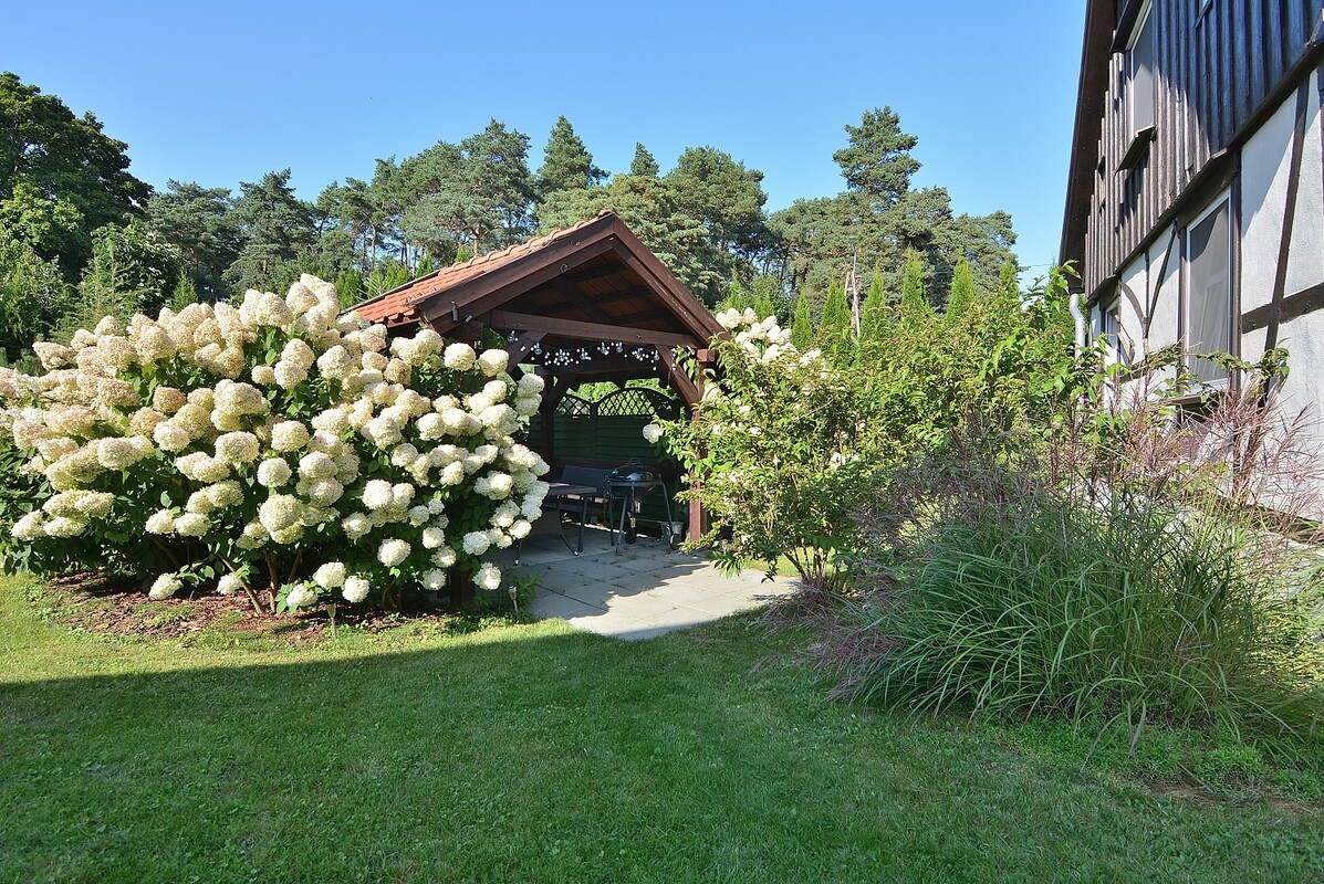 Dom letniskowy o powierzchni użytkowej 45 m2 (po podłodze ok.100 m2) wybudowany w 2019 roku. Posiada klimatyzację z funkcją grzania i osuszania powietrza. Ciepła woda na bojler elektryczny. Na podłogach terakota. Do dyspozycji użytkowników domu są dwie wiaty grillowe, jedna znajduje się przed budynkiem, druga za nim.