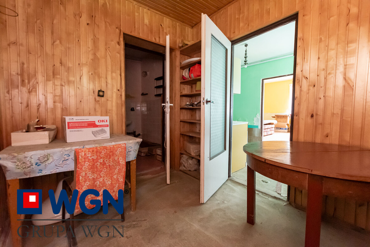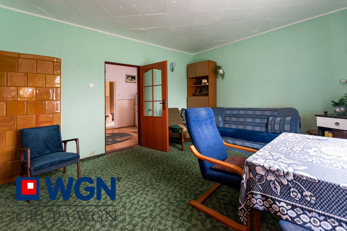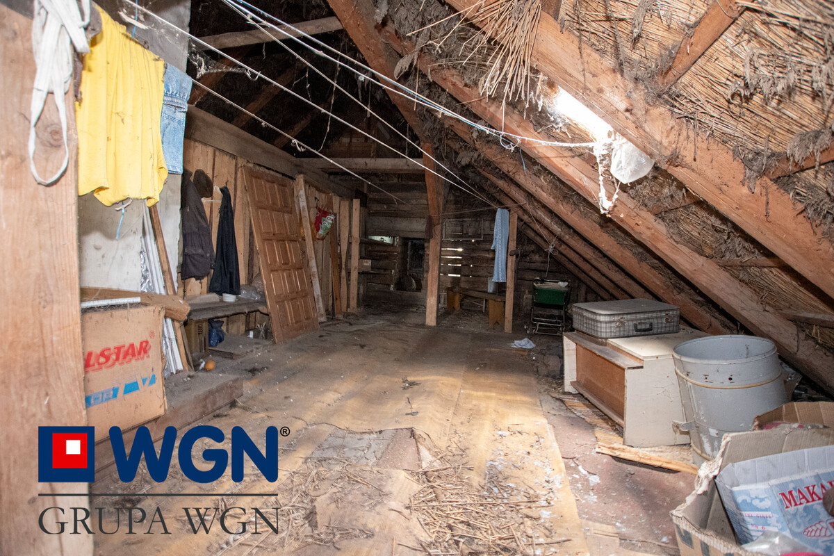 Dom od kilku lat nieużytkowany i wymaga remontu, ogrzewany był za pomocą pieców kaflowych, które można wymienić na kominek lub zamontować inne źródło ciepła. Woda podgrzewana była za pomocą bojlera elektrycznego. Wszystkie pomieszczenia są przejściowe. Do sprzedawanej części przynależy ogródek z delikatnym nasadzeniem drzewnym jak i drewniany garaż na 3 samochody. Nieruchomość z dużym potencjałem aranżacyjnym.