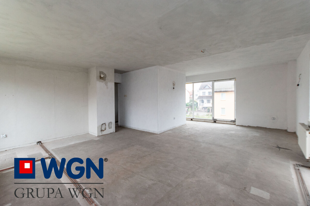 Część usługowa o powierzchni 39,2m2 to sala sprzedażowa, pomieszczenie magazynowe i WC. Dodatkowo garaż o powierzchni 17,4m2 i kotłownia. Nieruchomość do zagospodarowania pod własne potrzeby, z wielkim potencjałem inwestycyjnym. Aktualnie na poddaszu znajdują się otwarta przestrzeń do podziału na 3 pokoje sypialniane i garderobę.