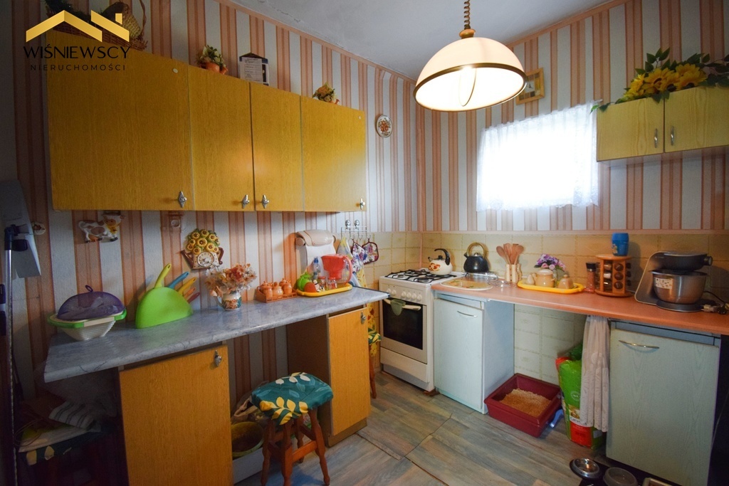 - Kuchnia: jasna, duża z wyposażeniem AGD oraz przylegającą spiżarnią.