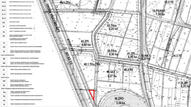 Działka jest objęta Miejscowym Planem Zagospodarowania Przestrzennego - Uchwała Nr XXXI/1038/2002 Rada Miejska w Elblągu z dnia 12.09.2002 roku terenu w rejonie ulicy Żuławskiej i drogi Nr 7 w Elblągu, na podstawie którego znajduje się na terenie usług turystyki, oznaczonym symbolem 40.UCt; na terenie ulicy lokalnej, oznaczonym symbolem 013.KL1/2 oraz we fragmencie na terenie drogi ekspresowej oznaczonym symbolem 001.KS2/2
