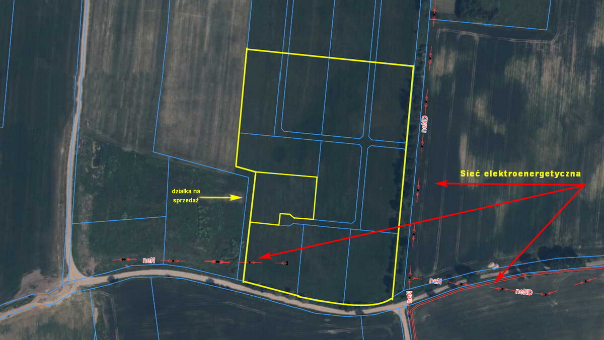Działka ma kształt prostokąta, jest wydzielona wewnętrzna drogą dojazdowa. Prąd jest w niedalekiej odległości od działki. Brak jest wodociągu, natomiast na rynku dostępne są rozwiązania, które pozwalają na niemal całkowite uniezależnienie się od dostawców mediów. Studnię można wykopać, do domu podłączyć małą oczyszczalnię ścieków (model o wydajności do 7,5 m3 na dobę nie wymaga pozwoleń, a jedynie zgłoszenia), a prąd ewentualnie produkować z paneli zamontowanych na dachu.