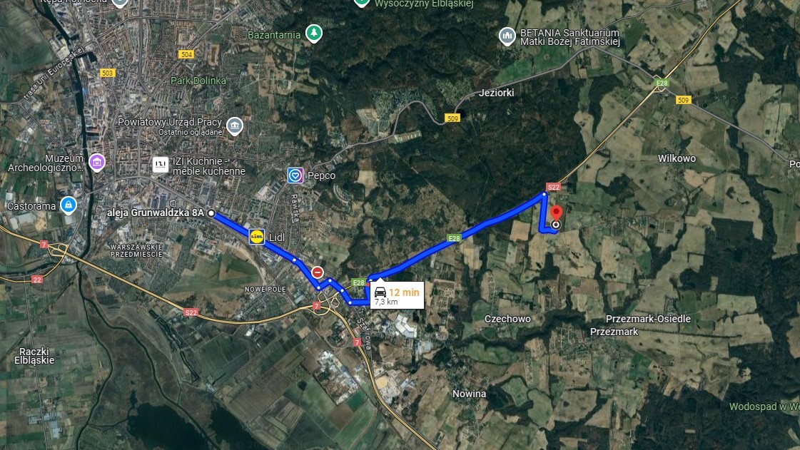 Spokojna lokalizacja, dookoła lasy. Do miejscowości Sierpin jak i działek dojeżdżamy ok 12-15 minut z Elbląga. Do Sierpina można dostać się tak zwaną "starą siódemką" lub wyremontowaną drogą przez Gronowo Górne.
