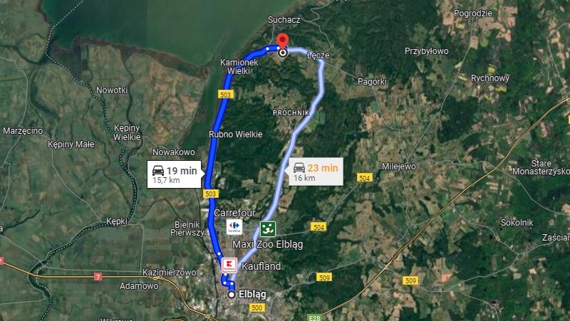 Nieruchomość znajduje się zaledwie 13 km od Elbląga, 10 km od Tolkmicka i ok. 4 km od Suchacza. Miejscowość należy do jednych z najstarszych wsi w powiecie elbląskim. Powstała na obszarze dawnego grodziska pruskiego pochodzącego z okresu 400-100 p.n.e. Znajdują się tu takie zabytki jak: Kościół barokowy wzniesiony w 1746 r z dobudowaną wieżą z renesansowym dzwonem (1546 r.); we wnętrzu zachował się barokowy ołtarz (1753), mosiężny świecznik (2. poł. XVIII w.) oraz drewniana chrzcielnica, Dom podcieniowy, Wiatrak z 1885 r.