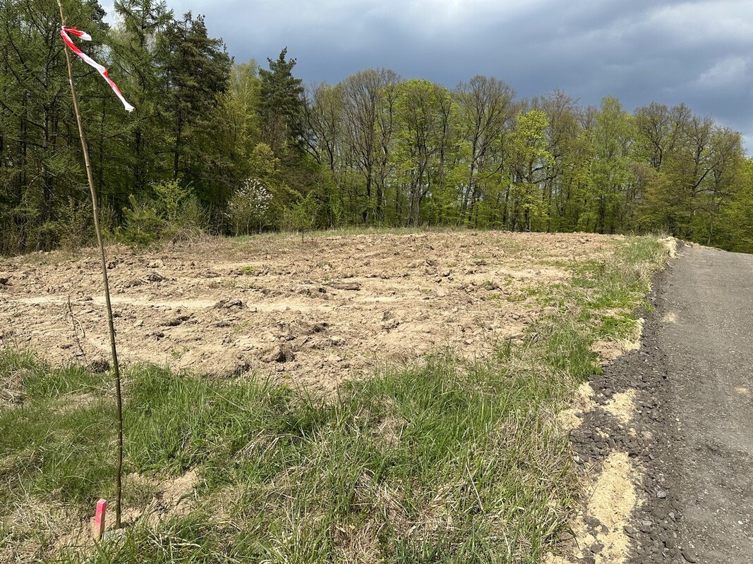 Działka w kształcie nieregularnym, teren płaski w otoczeniu Parku Krajobrazowego Wysoczyzny Elbląskiej, w pobliżu domków jednorodzinnych.