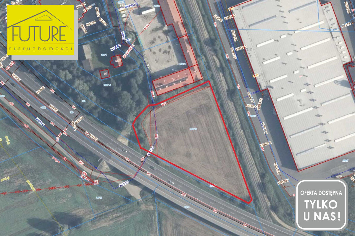 Ponadto działka jest dobrze widoczna z wiaduktu i dzięki temu firma może być reklamowana np. przez bilbord i duże reklamy.