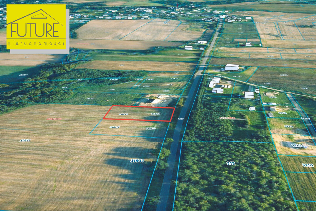 Działka o regularnym kształcie z dojazdem publiczną drogą asfaltową.