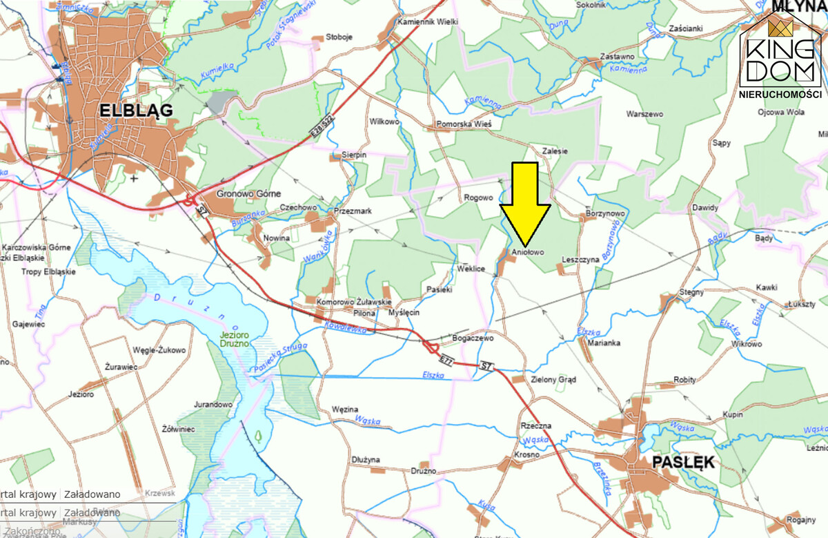Działka znajdują się w Aniołowie, zlokalizowanym w województwie warmińsko-mazurskim, w powiecie elbląskim, w gminie Pasłęk. W bezpośrednim sąsiedztwie znajduje się sklep spożywczy, co zapewnia wygodę codziennych zakupów. Działka jest doskonale skomunikowana, do Pasłęka dojazd samochodem zajmuje tylko kilka minut, skąd w łatwy sposób można wjechać na drogę ekspresową S7, zapewniającą szybkie połączenie m.in. z Elblągiem i Warszawą. Podróż do Elbląga zajmuje około 20 minut, co pozwala wygodnie korzystać z miejskiej infrastruktury.
