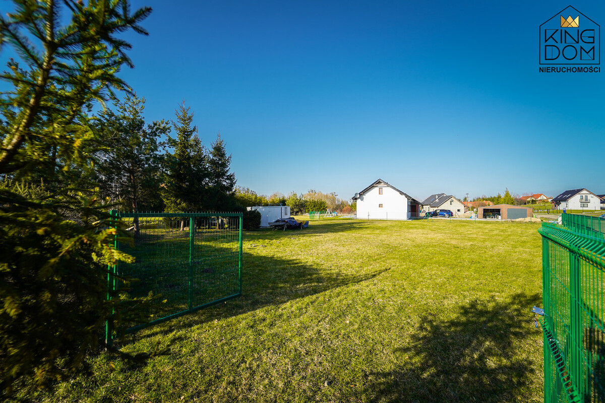 Działka ogrodzona o nieregularnym kształcie i powierzchni 2957 m2.