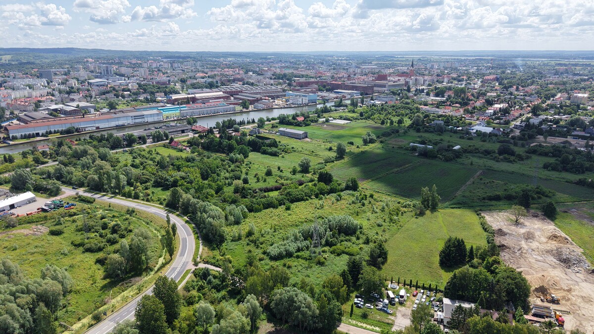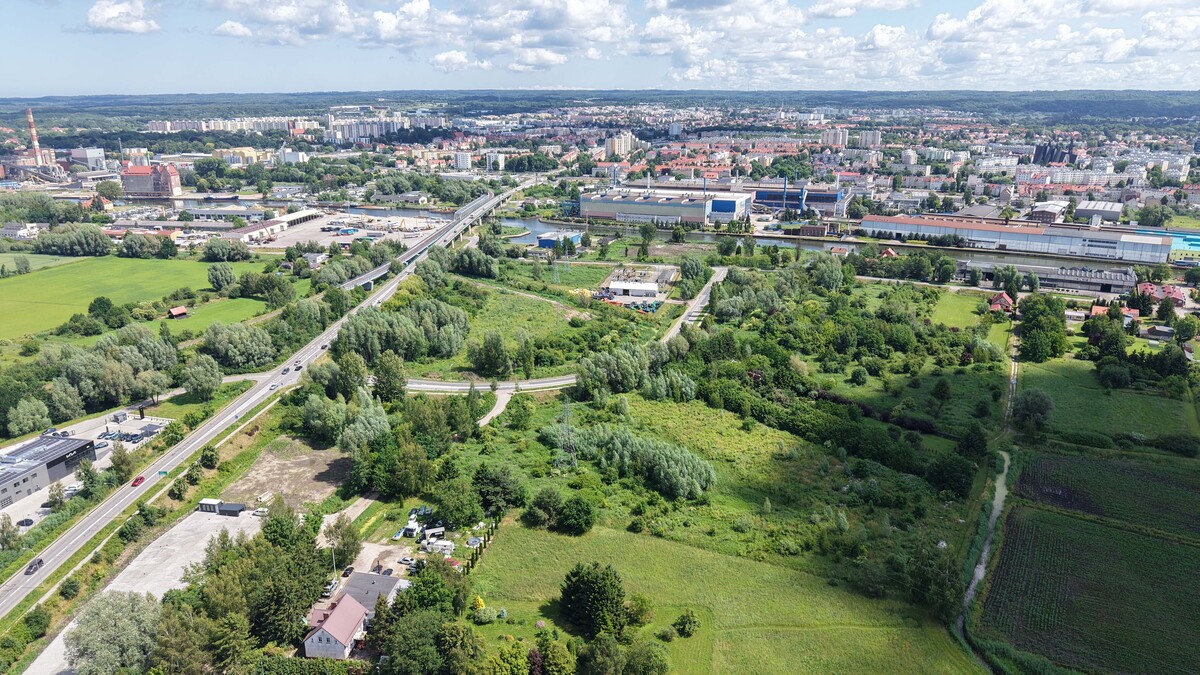 Działka położona na dzielnicy Zawodzie. Teren położony po stronie zachodniej rzeki Elbląg, nieruchomość widoczna z Trasy Unii Europejskiej i ulicy Radomskiej.