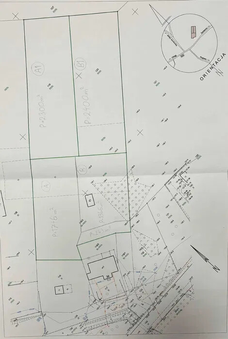 - możliwość zakupu działki budowlanej 1746 m2 (A) z działką rolną 2300 m3 (A1) (łącznie 4046 m2) w cenie 46 zł za m2.