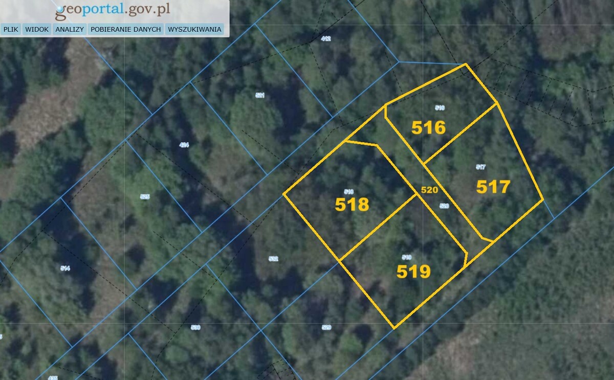 Grunt składający się z pięciu niezabudowanych, sąsiadujących z sobą działek o łącznej powierzchni użytkowej 1888 m2.Działki o następujących powierzchniach: 296 m2,449 m2,454 m2,464 m2,225 m2.