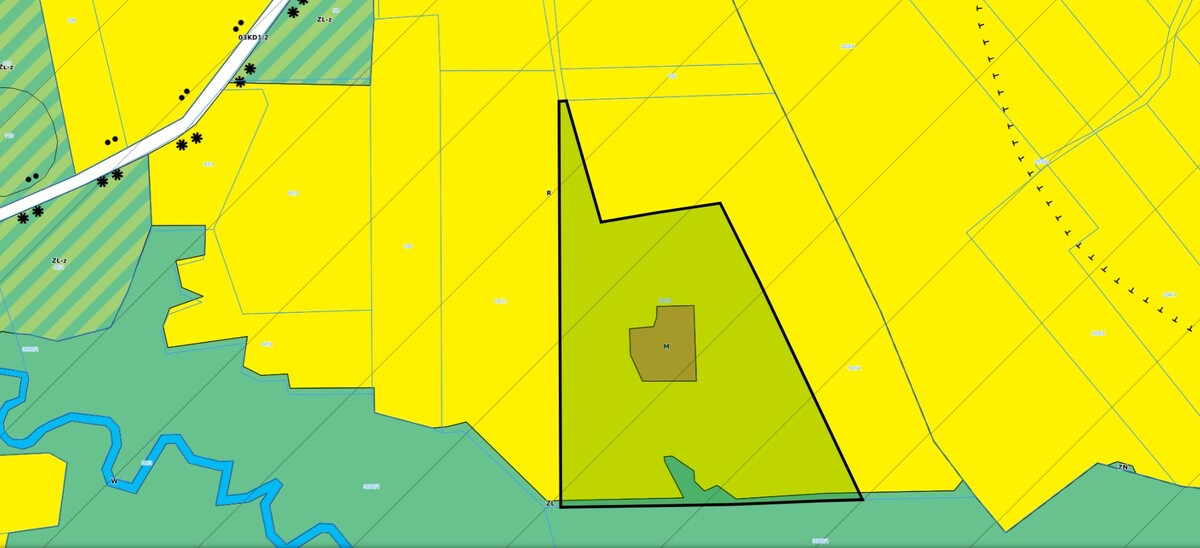 Opisana w miejscowym planie zagospodarowania przestrzennego: Tereny mieszkaniowe (symbol M), Teren upraw polowych /R/ i Tereny lasów (symbol ZL)