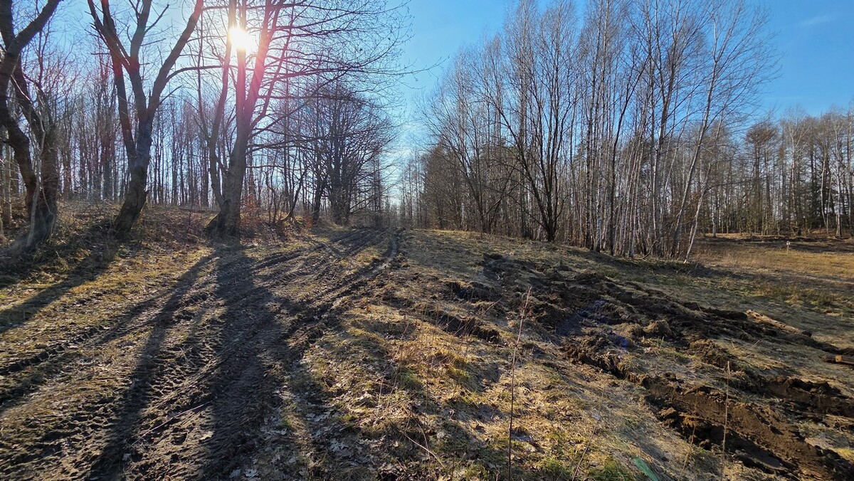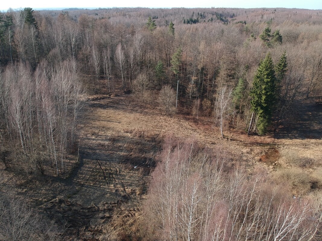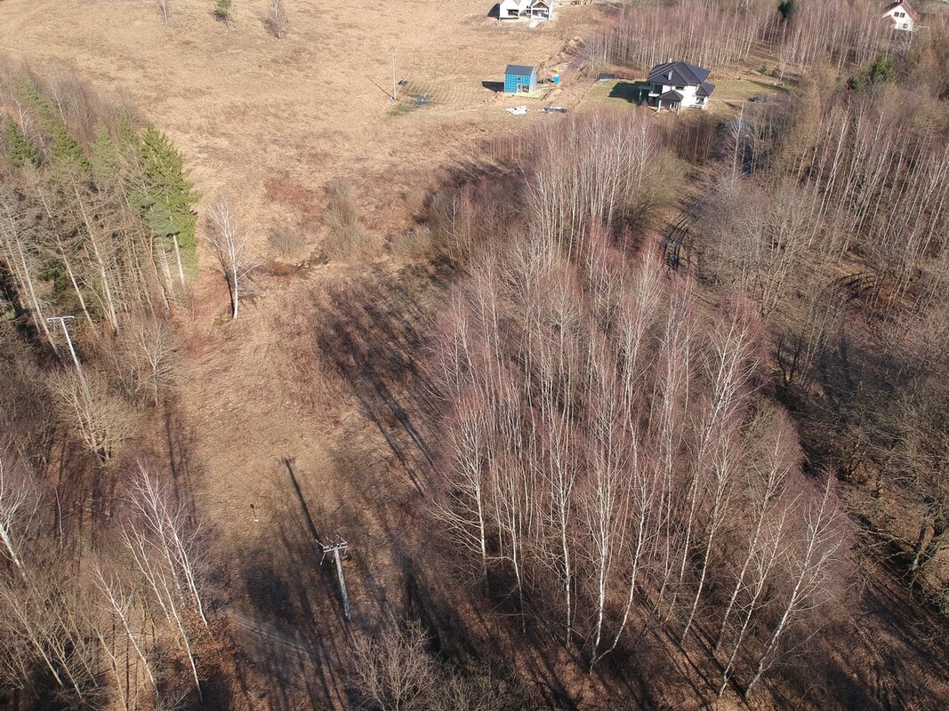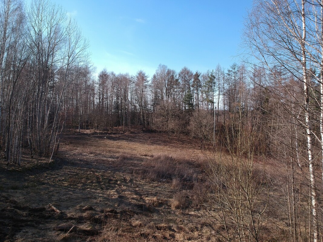 Działka w kształcie trapezu, teren lekko pagórkowaty, położona na terenie Parku Krajobrazowego Wysoczyzna Elbląska otoczona lasem, w luźnym otoczeniu domków jednorodzinnych.