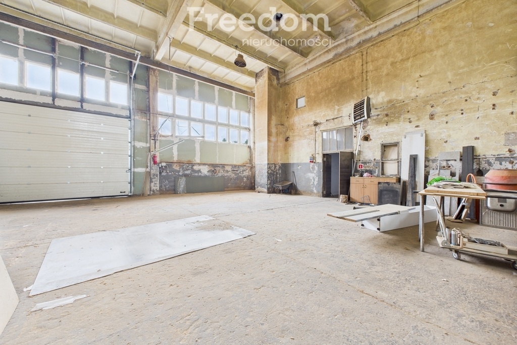 Wnętrze budynku to 10 pomieszczeń, których wysokość wynosi ok. 350 cm – idealne dla różnorodnych zastosowań. Posadzki to solidna wylewka betonowa, a dodatkowo w budynku znajduje się łazienka z WC oraz zaplecze socjalne. Hala nie posiada piwnicy.