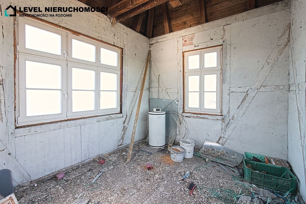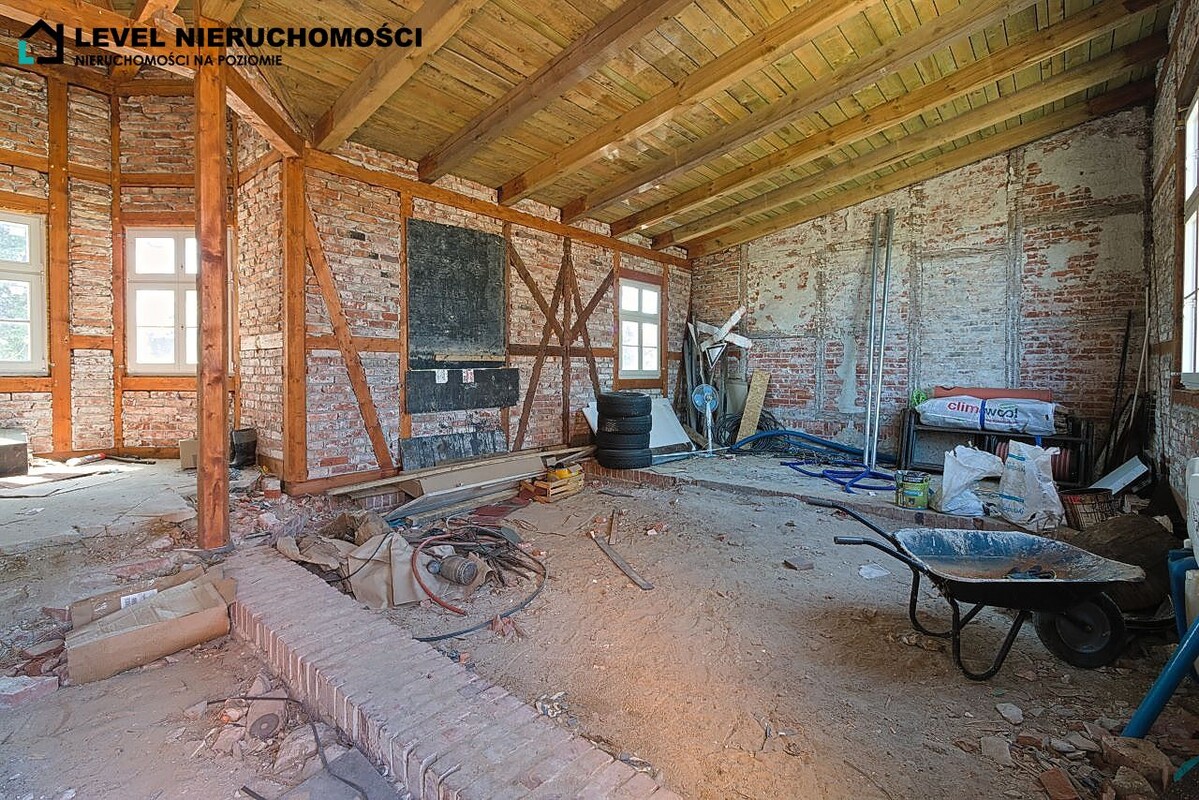 Budynek pomocniczy o powierzchni 120,2 m2 – dawny magazyn, idealny na warsztat, pracownię lub dodatkową przestrzeń użytkowa.
