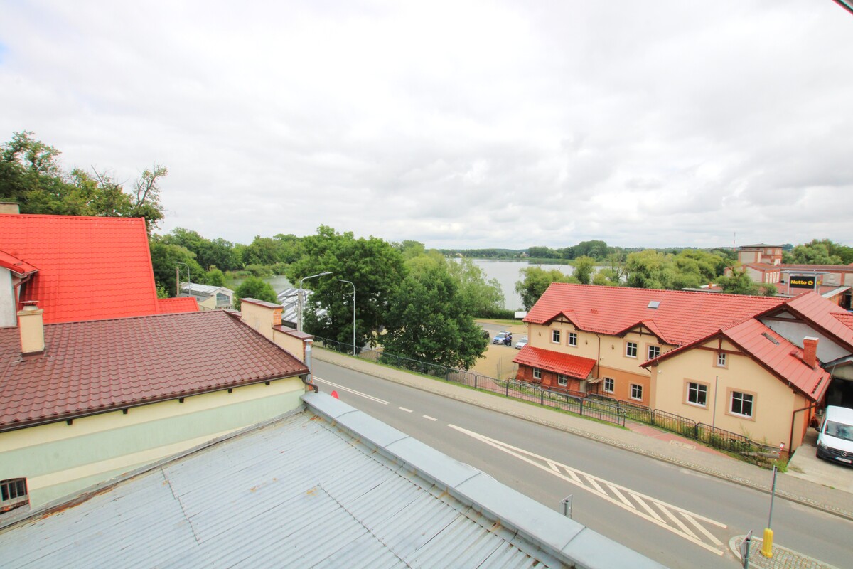 Do nieruchomości doprowadzone są media miejskie tj. instalacja elektryczna, wodociągowa, kanalizacyjna, gazowa, centralnego ogrzewania, telefoniczna i internetowa. Budynek zewnętrznie został zmodernizowany, wykonana estetyczna elewacja, w pastelowym kolorze, dach budynku pokryty dachówką. Stolarka okienna aluminiowa, drzwi wewnętrzne z płyty MDF, drzwi wejściowe do budynku aluminiowe z przeszkleniem. Podłogi w pokojach hotelowych pokryte wykładziną dywanową, zaś w częściach wspólnych, łazienkach i na zapleczu gastronomicznym wyłożone glazurą. Zewnętrzne przedproże budynku wymaga modernizacji. W obiekcie funkcjonują dwa alternatywne źródła ogrzewania, piec etażowy na ekogroszek z podajnikiem oraz centralne ogrzewanie gazowe dwufunkcyjne - ok.3-letni piec gazowy. Z okien pokoi rozpościera się urokliwy widok na jezioro.