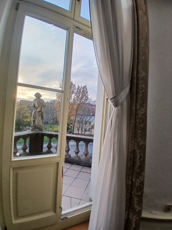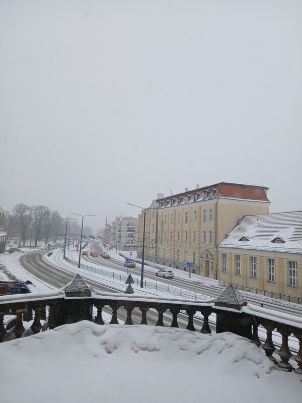 - wyjście na niewielki taras z widokiem na jedną z głównych ulic miasta