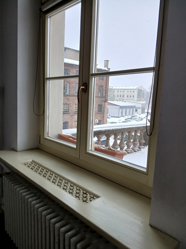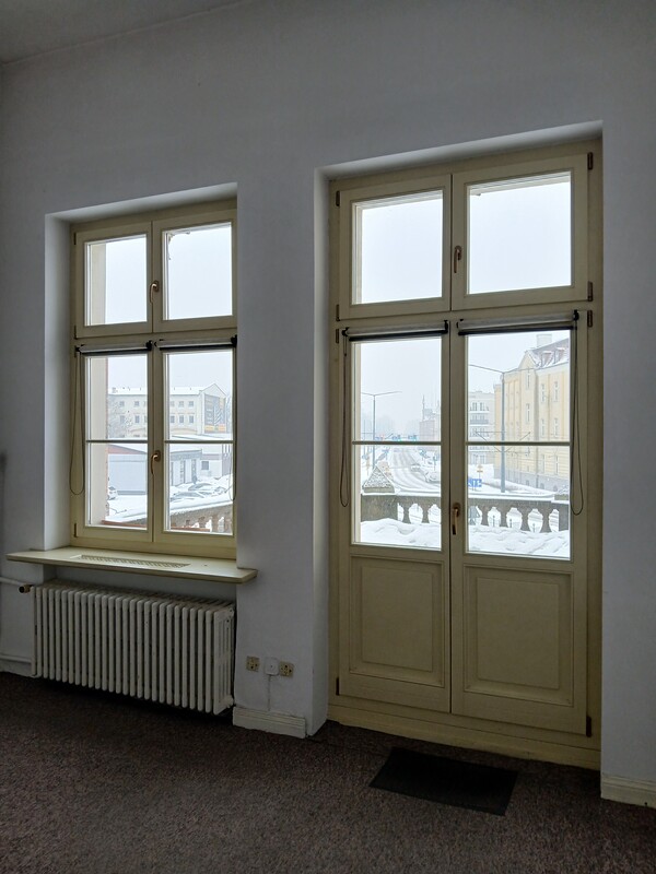 - ustawne, wysokie pomieszczenie z oknami w dwóch kierunkach