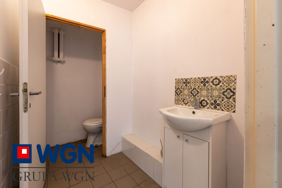 Parter nieruchomości z wejściem z bocznej części budynku to duże pomieszczenie z zapleczem i osobnym WC.