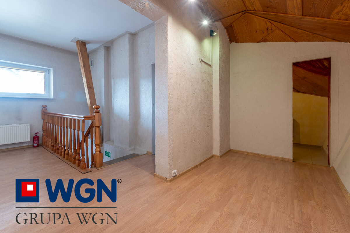 Na piętro prowadzi frontowe wejście do budynku, a znajduję się tam jedna sala użytkowa i wydzielone dodatkowe WC.