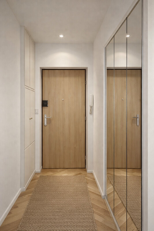 - zamykana garderoba / schowek w przedpokoju — idealna pod zabudowę